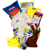 Treat your beloved with so nice surprise: basket, toy Easter bunny, Easter cake (paskha) ,chocolate bar, 1 pack of tea